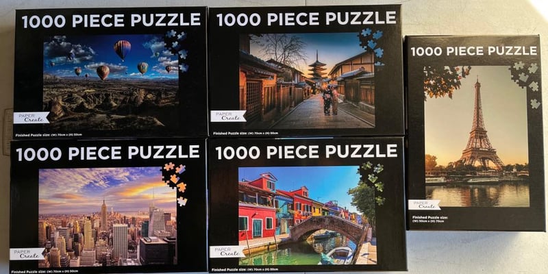 5 X Brand New Jigsaw Puzzles, 1000pc, World Travel Themed, 50cm x 70cm SOLD AS 1 LOT
