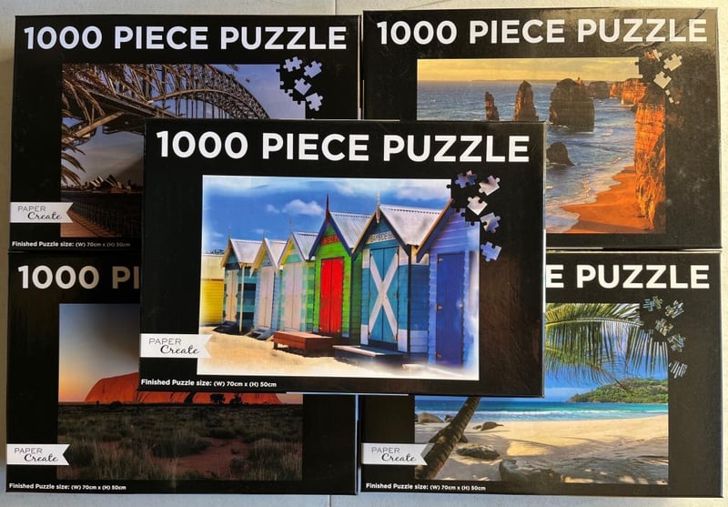 5 X Brand New Jigsaw Puzzles, 1000pc, Australian Themed, 50cm x 70cm SOLD AS 1 LOT