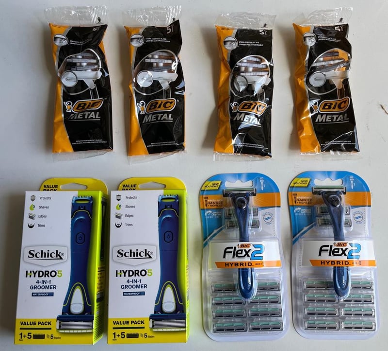 Schick and Bic Shaver Sets, Includes 2 X Schick Hydro 5 4in1 Groomers with refills rrp $40 each, 2 X Bic Flex 2 with 9 Blade Refills + 4 X Bic Metal 5pc Brand New SOLD AS 1 LOT