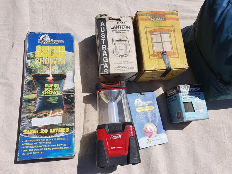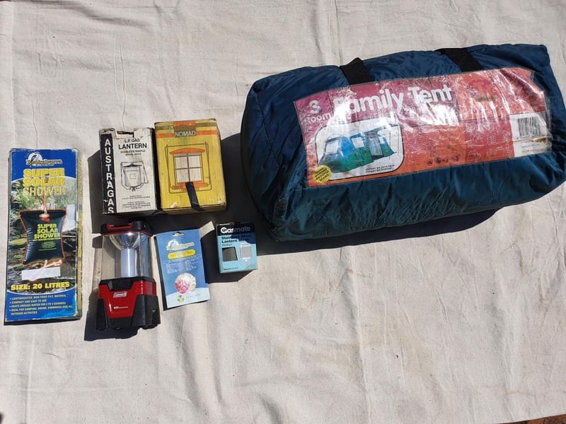 TENT - 3 room tent in carry bag PLUS solar shower, gas lanterns, battery lantern etc etc