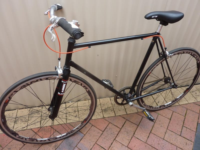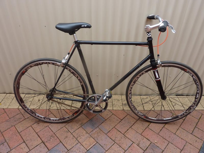 Bike single speed. Flip-flop ratchet or fixie. 700C race wheels. Mediun size .frame.