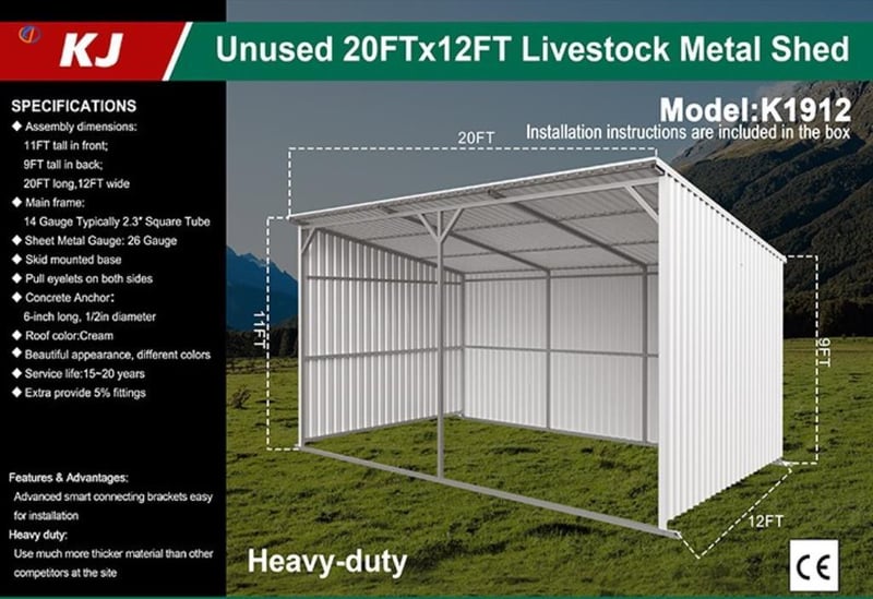 FACTORY DIRECT ** Unused 2025 20FTx12FT Livestock Metal Shed