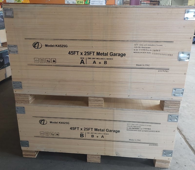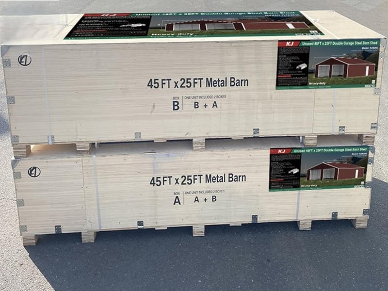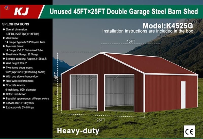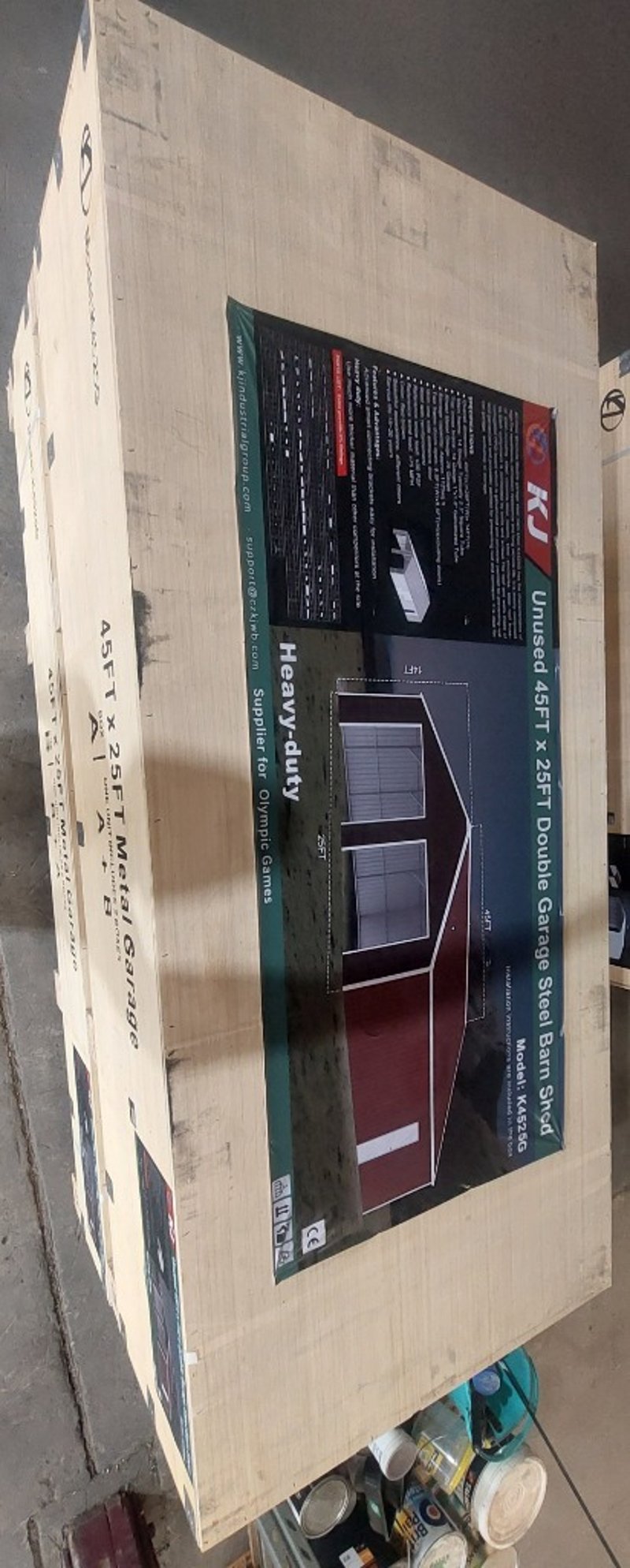 FACTORY DIRECT ** Unused 2025 45FTx25FT Double Garage Steel Barn Shed, (Red-brown)