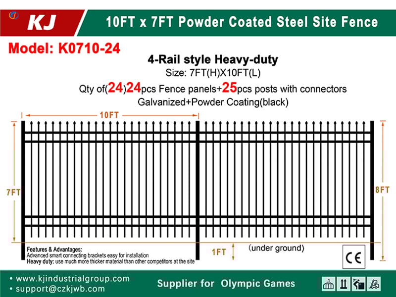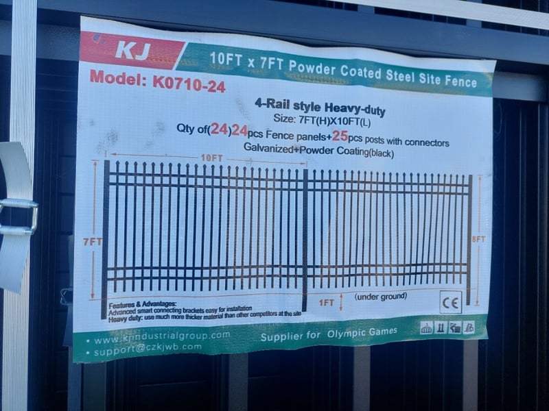 FACTORY DIRECT ** Unused 2025 10 ft x 7 ft Powder Coated Fence Panels (Galvanization)4-Rail styleSize: 7FT(H) X 10FT(L)Qty of 24pcs Fence panels+25pcs posts with connectorsGalvanized & Powder Coating (black)K0710-24KJ25022226Contact King Cheung on 0477987576 or [email protected]Note: OEM images and VIDEOS shown are for illustration purposes only, and used as a guide only, inspections highly recommended.