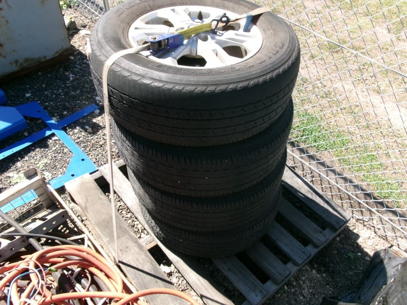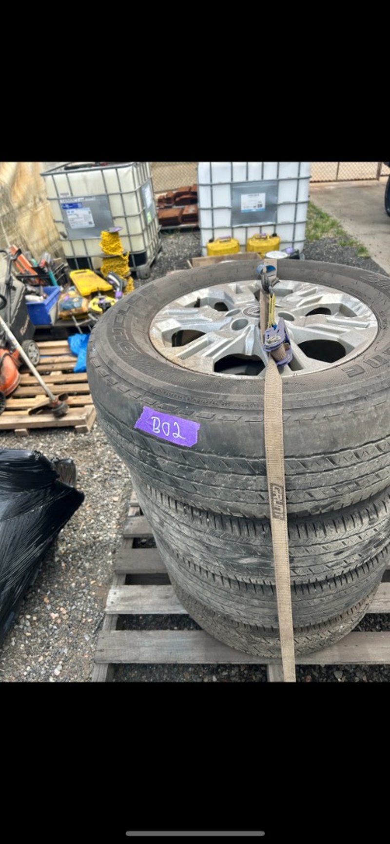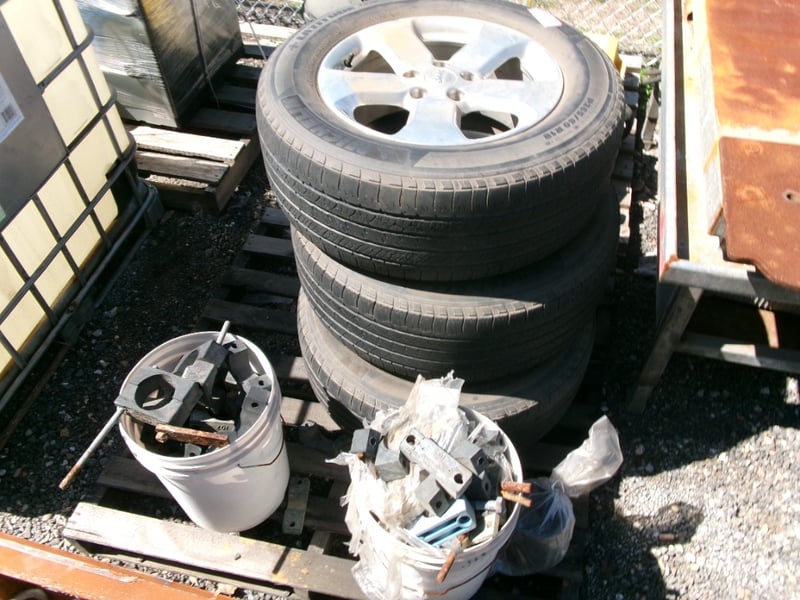 Assorted Lot Including: JEEP 18" RIMS W/ TYRES (x3), POLY PRO HOSE CLAMPS LARGE (x2), NISSAN RIMS 17" W/ TYRES (x4)