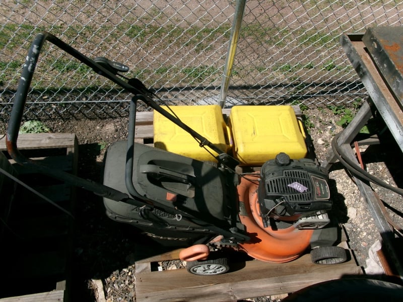 Assorted Lot Including: YELLOW FUEL CONTAINER 20L (x2), POWER-G PUSH LAWN MOWER (x1)