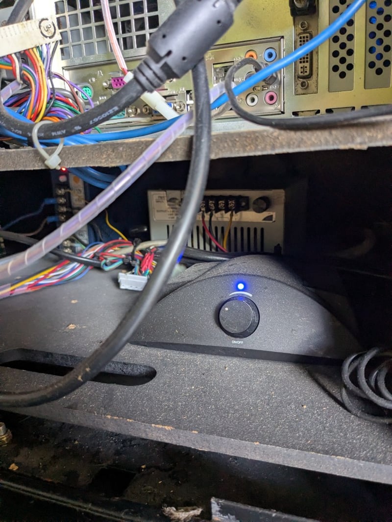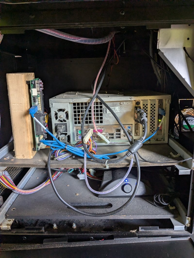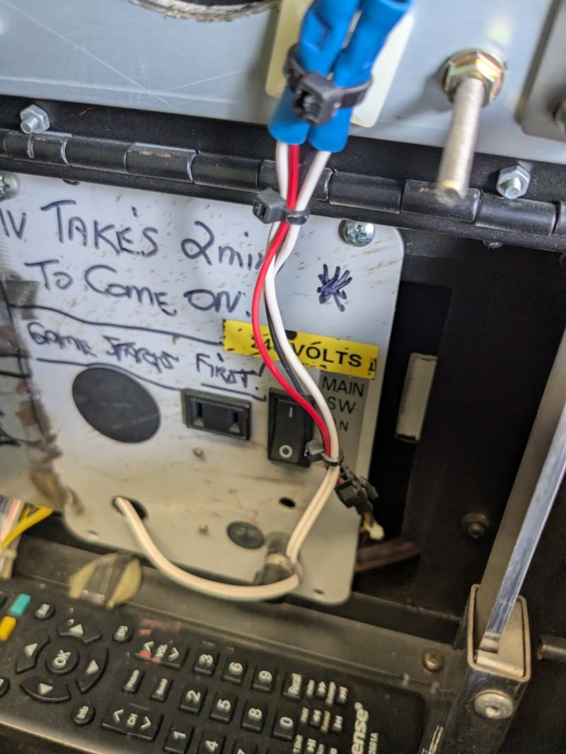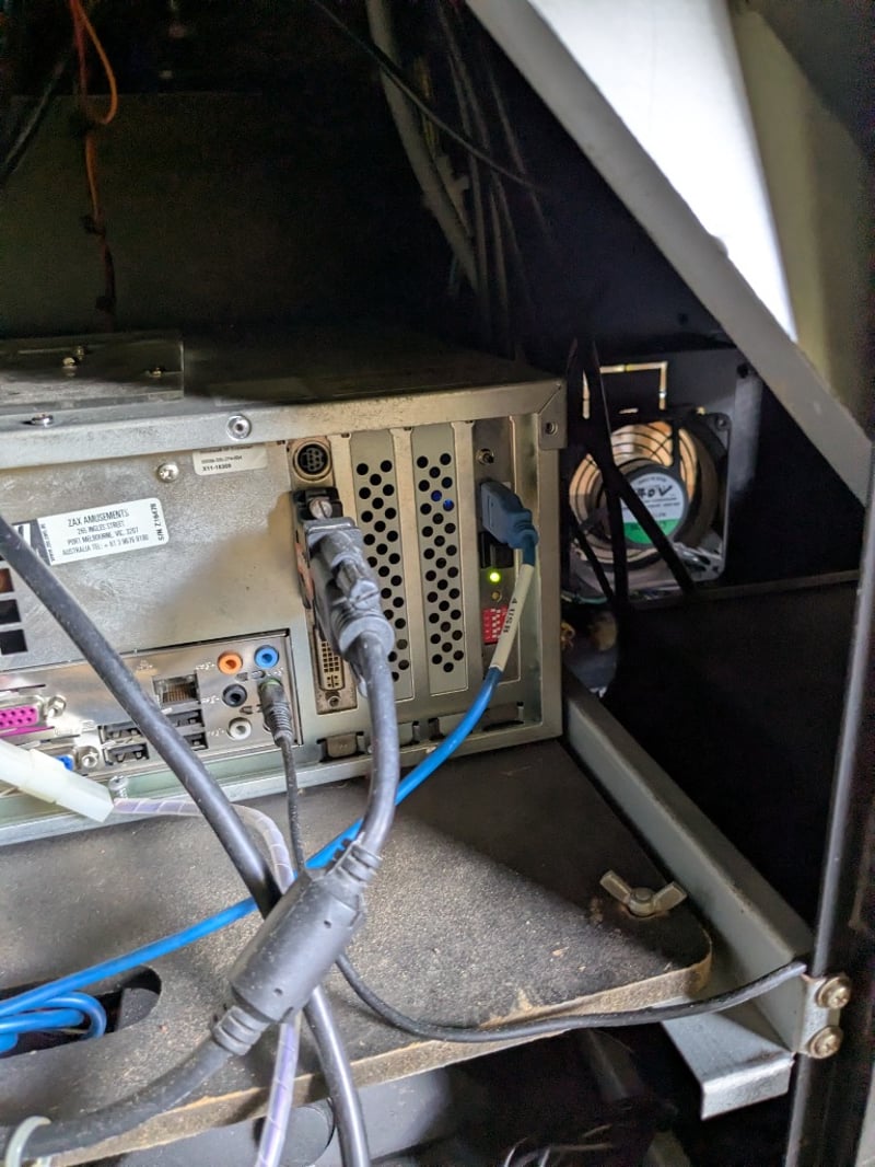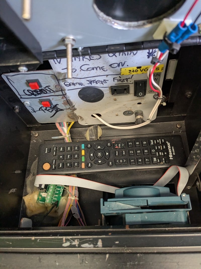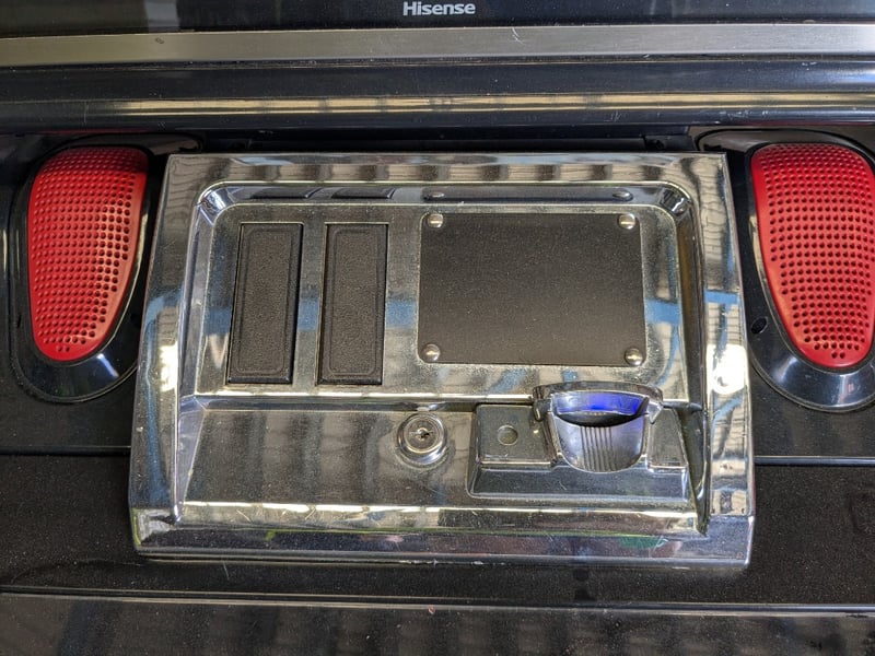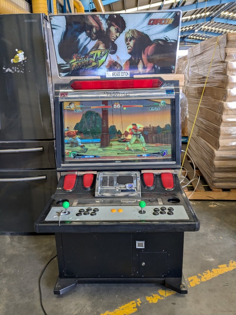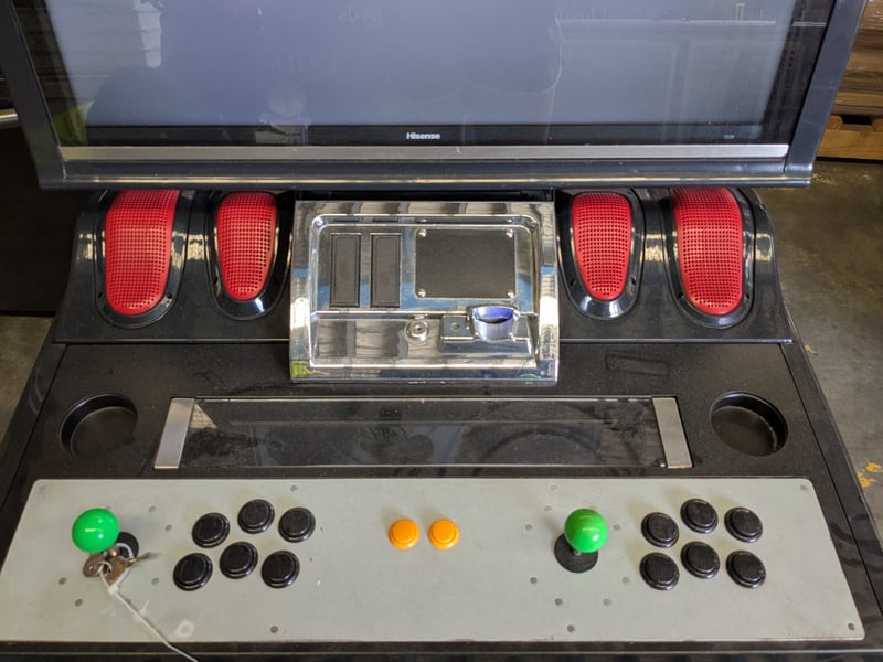 Description: 32 inch LCD SCREEN, dual-player control panel with joysticks and buttons. Includes keys, Power cable, Coin mechanism, Signs of wear, Machine turns on,