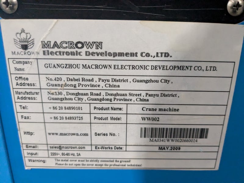 Arcade Claw Crane Machine, Macrown Electronic,Toy House,in working Condition