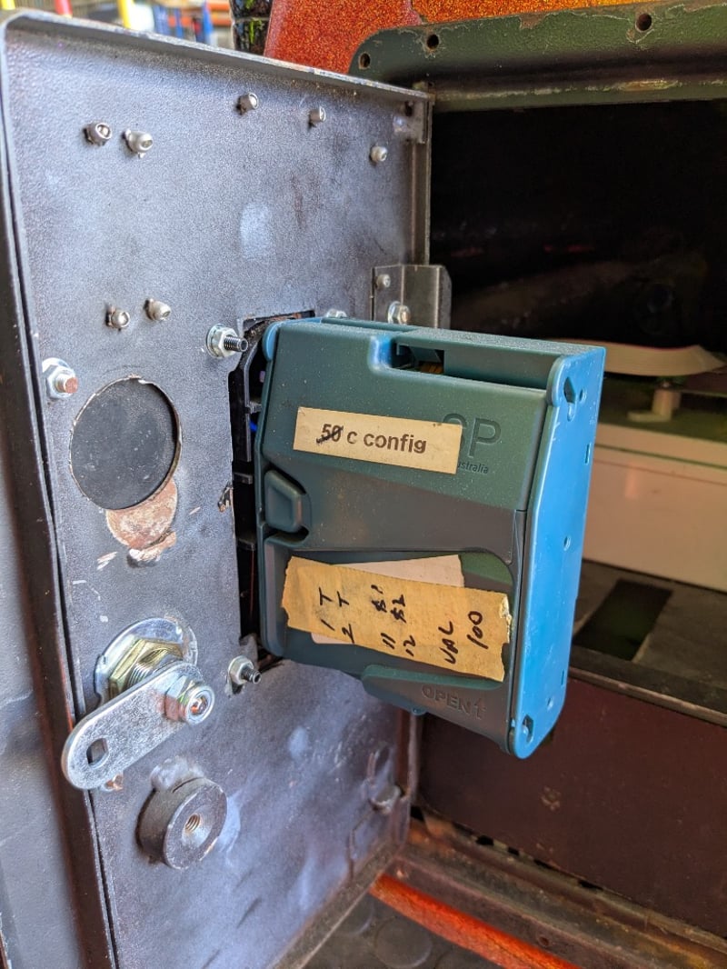 Description: no keys, Power cable, Coin mechanism, Signs of wear, Machine turns on,