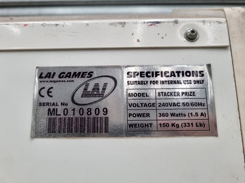 Redemption Machine, Lai Games, Model: Stacker Prize, Serial: ML010809,