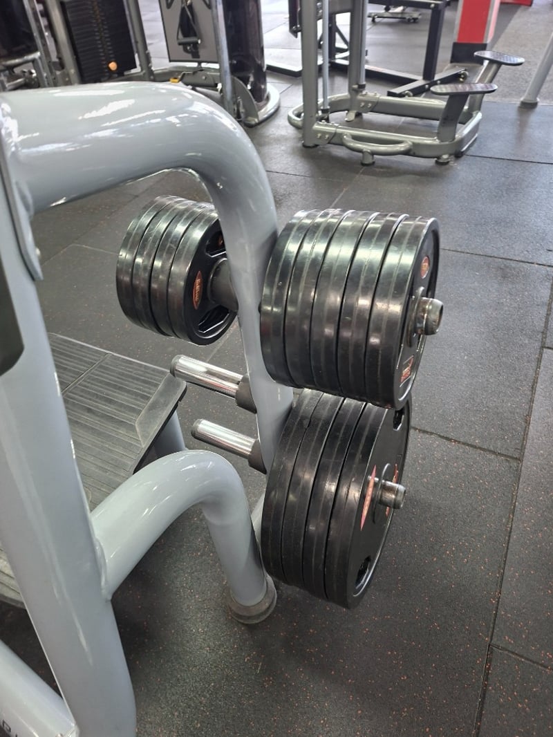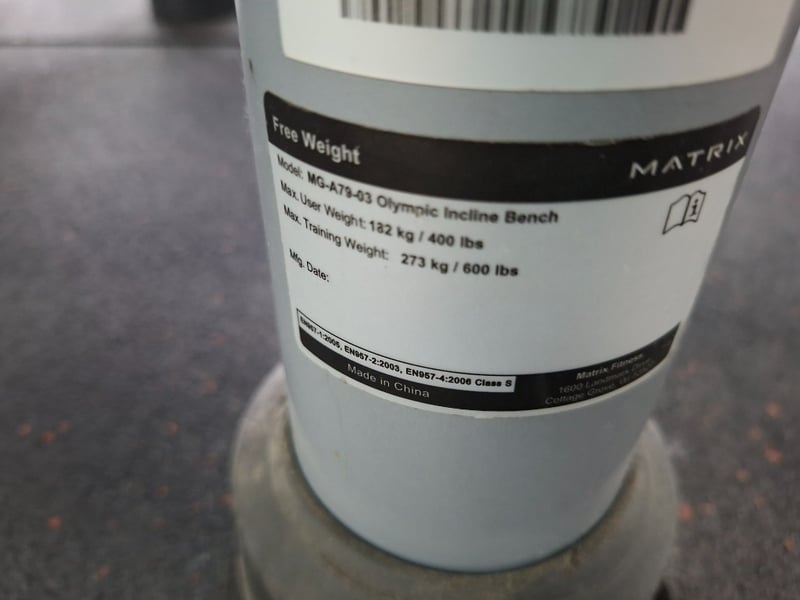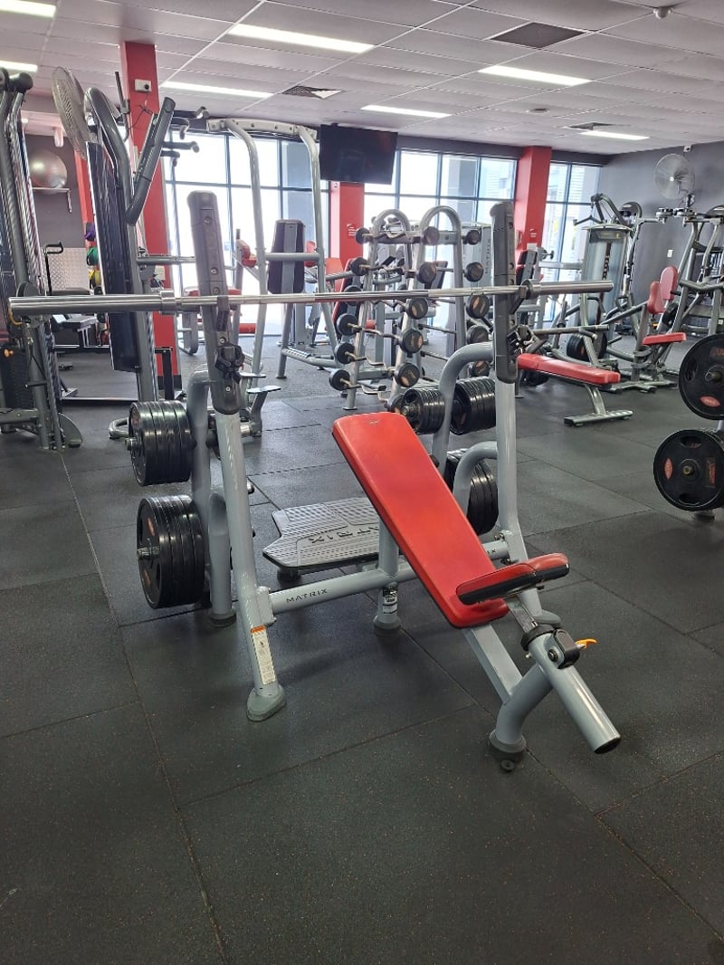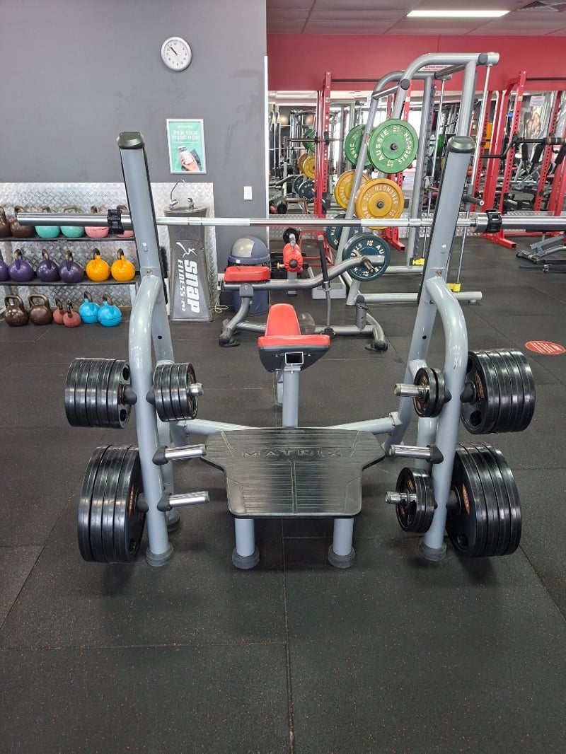 Incline Bench Press – Matrix Includes: 1 x 30mm 20kg Aussie Strength barbell 8 x 20kg weight plates 4 x 10kg weight plates 7 x 5kg weight plates 4 x 2.5kg weight plates 2 x 1.25kg weight plates Description: Matrix commercial-grade incline bench press setup complete with Aussie Strength 20kg barbell and full complement of Olympic-style plates. Heavy-duty steel bench frame with adjustable backrest and integrated racking points for safe and controlled pressing.