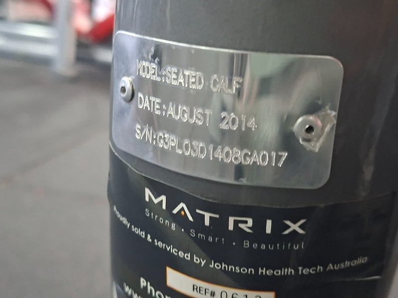 Seated Calf Raise – Matrix Description: Matrix commercial-grade seated calf raise machine designed for isolating and strengthening the lower leg muscles. Features a durable steel frame, adjustable thigh pads, and smooth plate-loaded resistance arms for controlled motion.