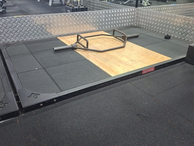Deadlift Platform – Iron Edge Includes: 1 x trap bar Description: Iron Edge commercial-grade deadlift platform designed for Olympic and powerlifting movements. Built with a solid timber and rubber surface to protect equipment and flooring during heavy lifts. Supplied with a trap bar, providing versatile options for traditional or hex bar deadlifts