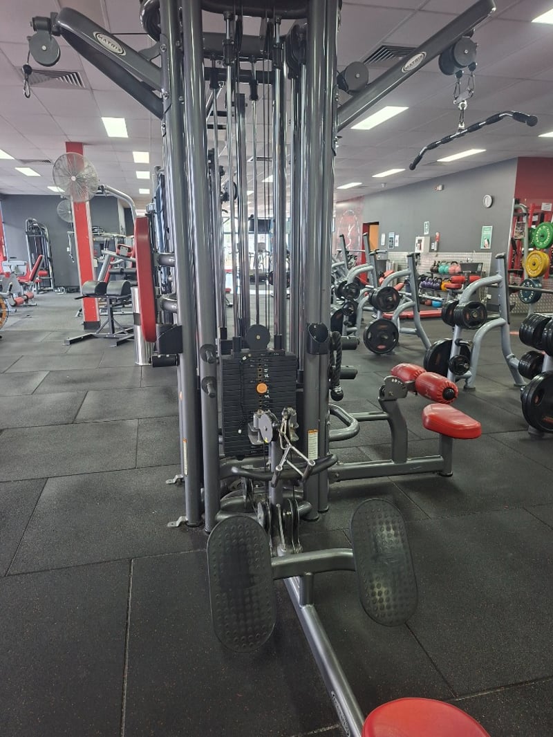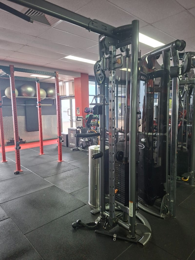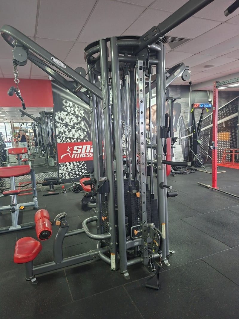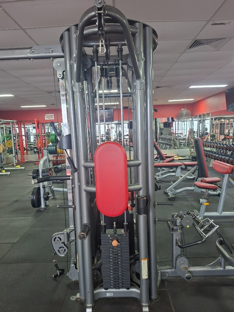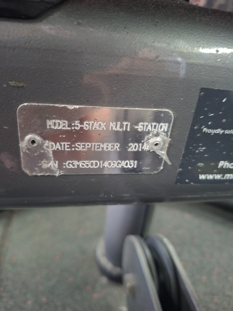 5-Stack Multi Station Cable Machine – Matrix Includes: Pull-up connection bar Various cable attachments and accessories Description: Matrix 5-stack multi-station cable machine, manufactured September 2014. Commercial-grade strength system designed for versatile full-body training, allowing multiple users to perform exercises simultaneously. Features five independent weight stacks with adjustable pulleys for customised resistance, integrated pull-up bar, and a range of cable accessories.