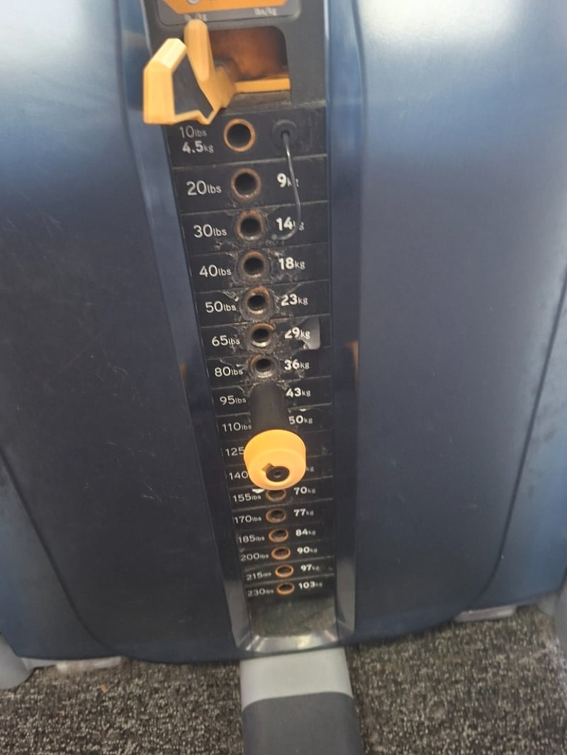 Features a smooth weight stack system, adjustable starting position, and padded ergonomic seat for comfort and support.
