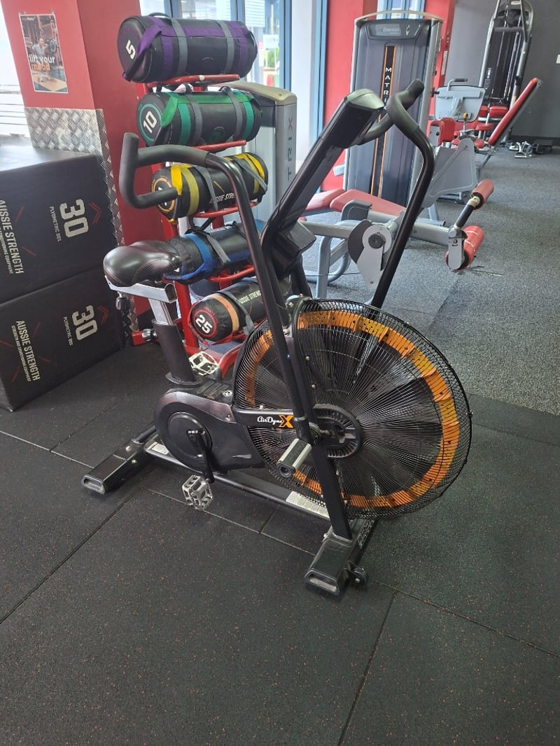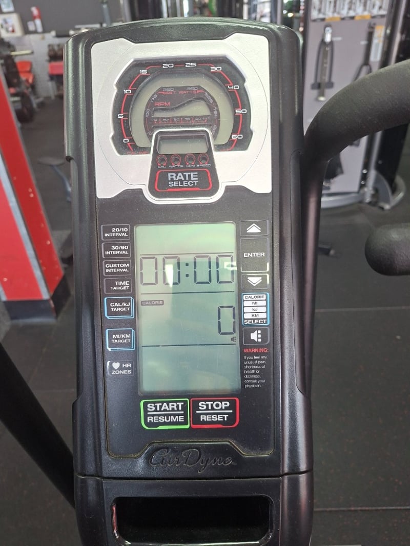 Assault Bike – Octane Fitness Serial Number: 100662PRO19180043 Description: Octane Fitness Assault Bike built for high-intensity cardio and endurance training. Features a belt-driven fan resistance system that increases with pedaling effort, providing a smooth yet challenging workout. Dual-action handlebars engage both upper and lower body muscles. Heavy-duty steel frame construction with adjustable seat and digital performance monitor for tracking time, calories, distance, and watts.
