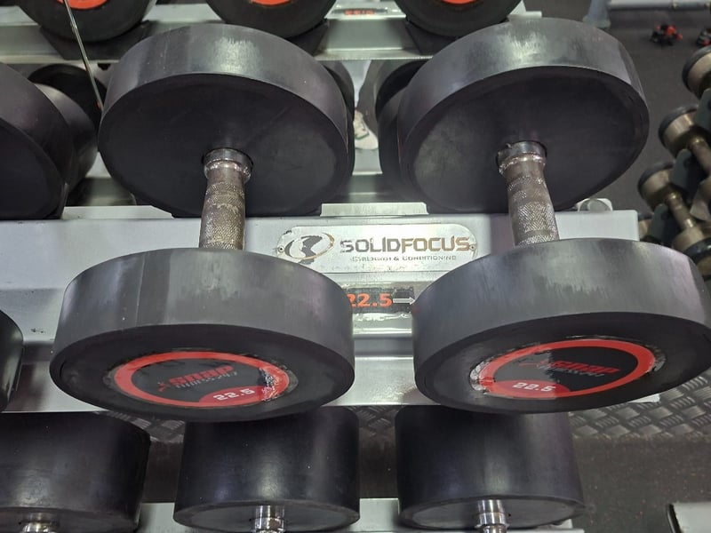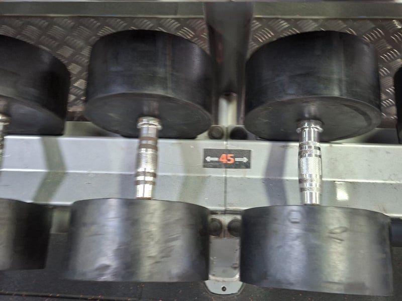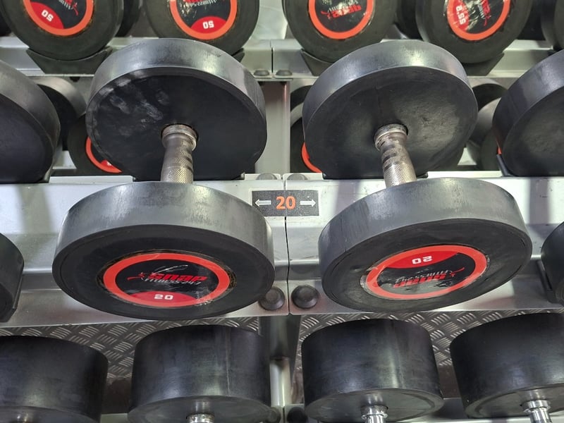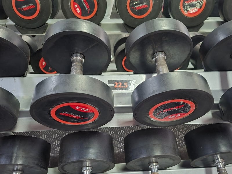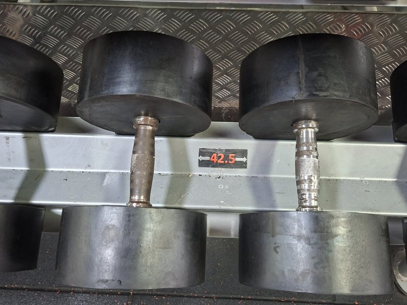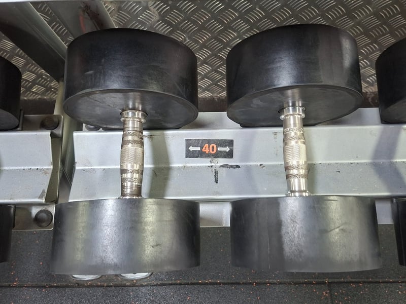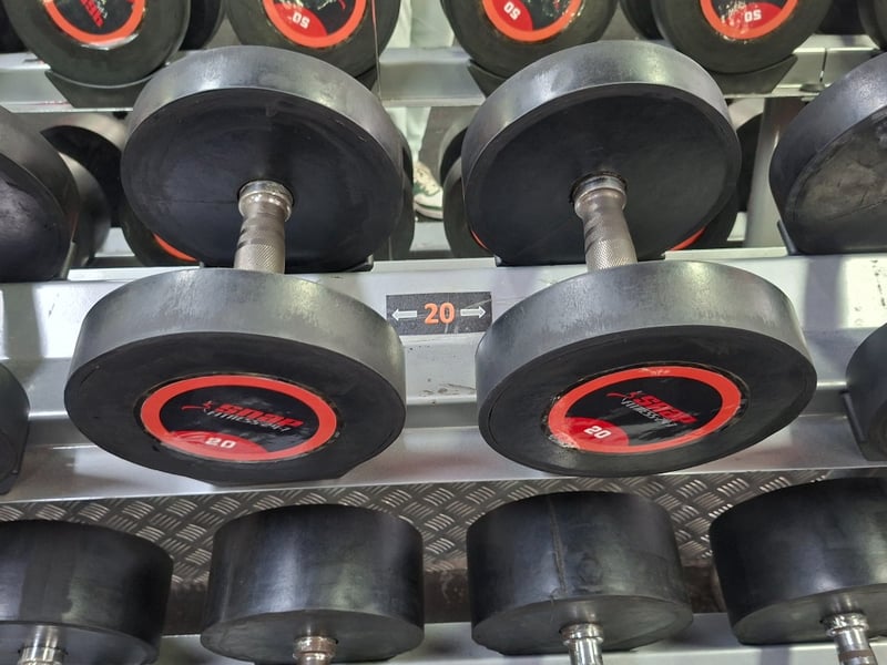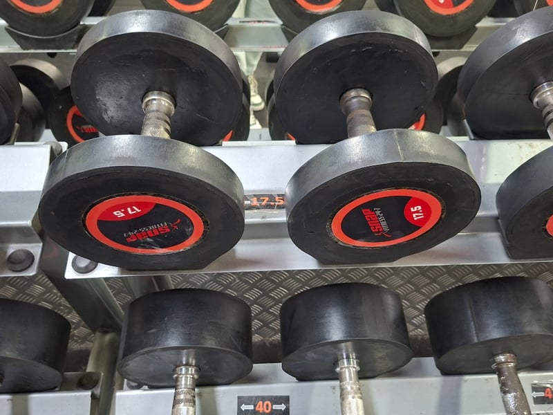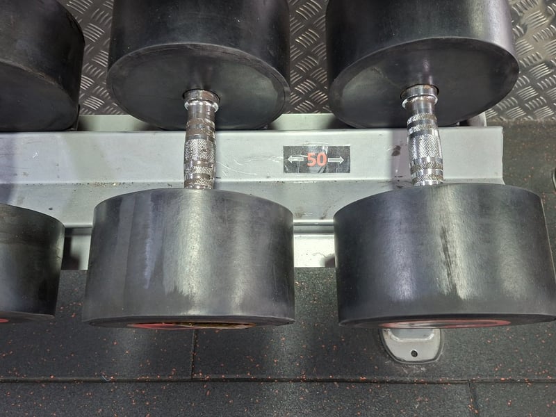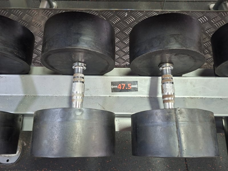 Commercial Dumbbell Set with 3-Tier Rack Includes Dumbbells: 17.5kg, 20kg, 22.5kg, 40kg, 42.5kg, 45kg, 47.5kg, 50kg Description: Complete commercial dumbbell set with rubber-coated fixed dumbbells and a heavy-duty 3-tier storage rack. Solid steel handles, durable rubber heads, suitable for any gym environment.