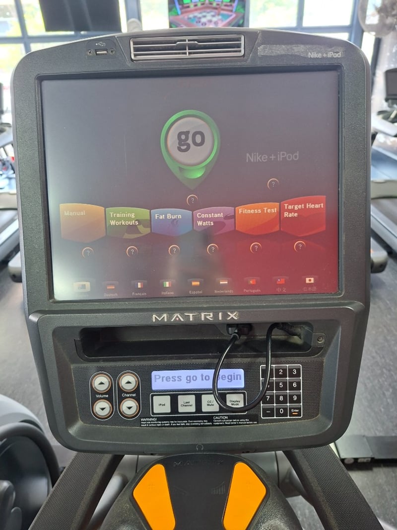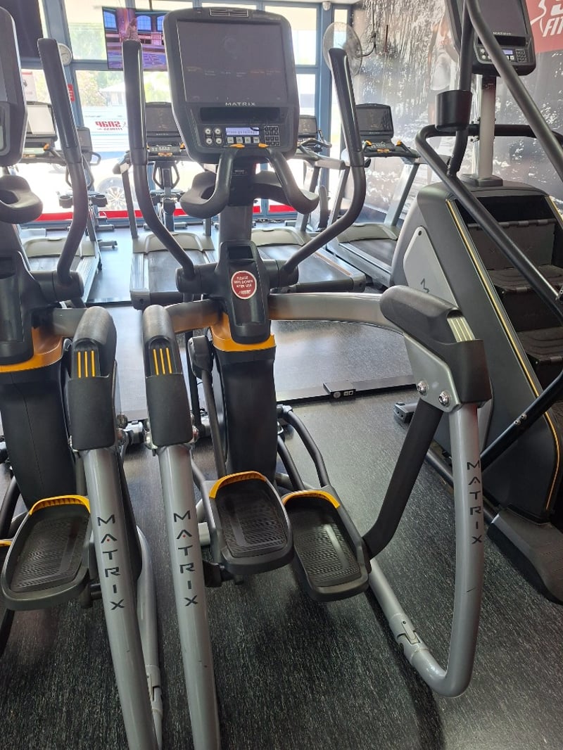 Commercial-grade Matrix elliptical trainer designed for smooth, low-impact cardio workouts. Features ergonomic multi-grip handles, oversized cushioned pedals, and an intuitive console for tracking key workout metrics.