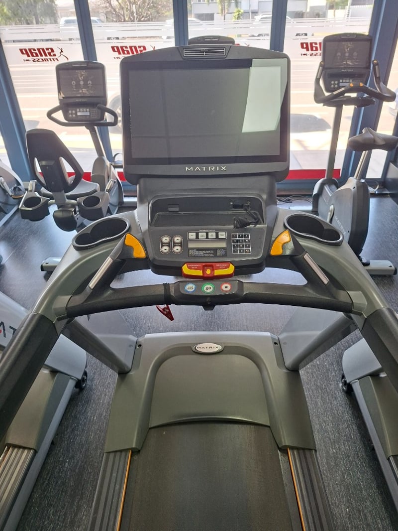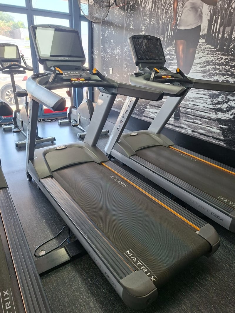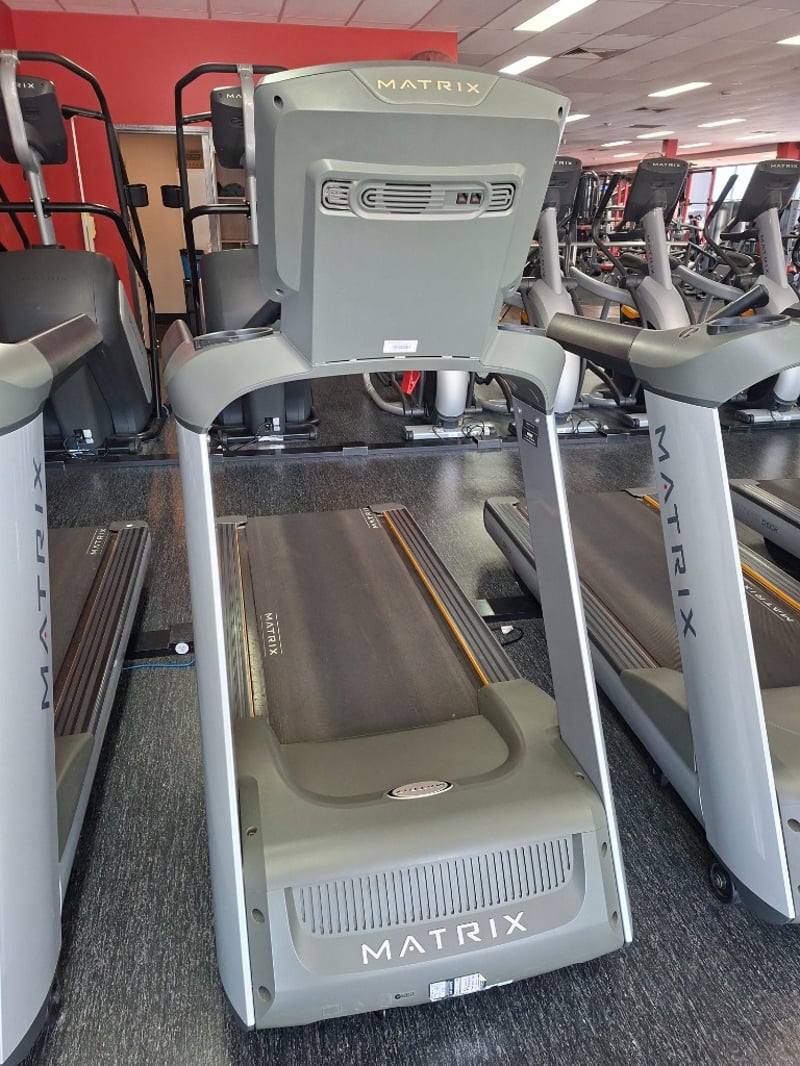 Matrix commercial-grade treadmill equipped with the T-7XI interactive console. Features include durable running deck, smooth belt system, multiple training programs, and ergonomic handrails
