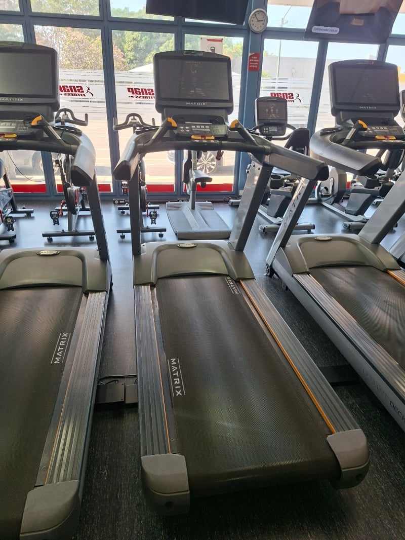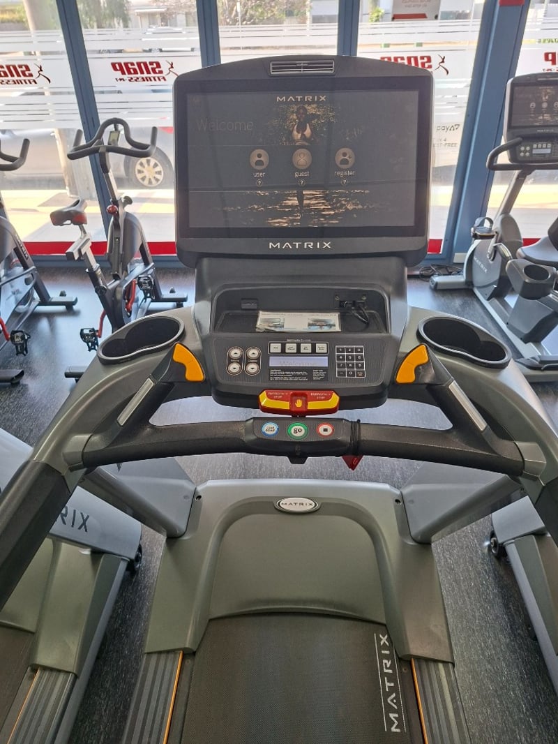 Matrix commercial-grade treadmill equipped with the T-7XI interactive console. Features include durable running deck, smooth belt system, multiple training programs, and ergonomic handrails