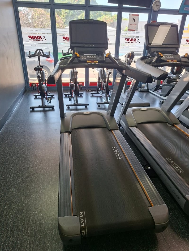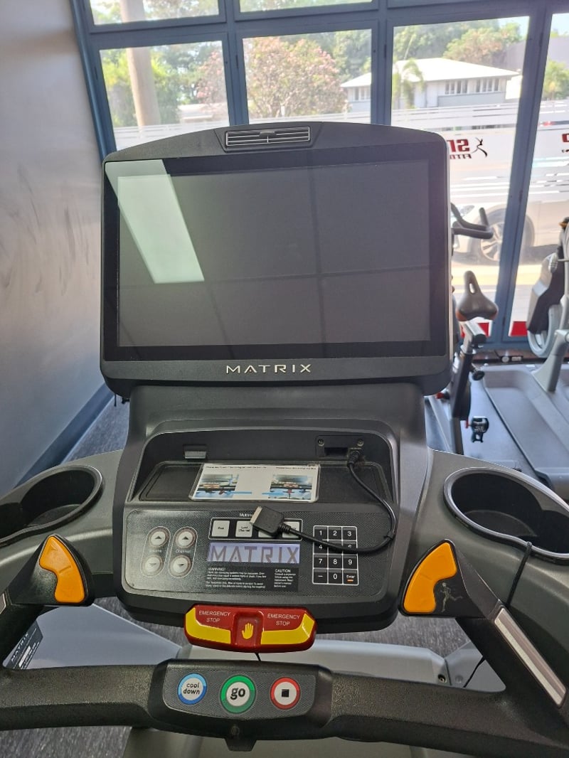 Treadmill – Matrix Model: T-7XI-C Serial Number: CTM521140902275 Description: Matrix commercial-grade treadmill equipped with the T-7XI interactive console. Features include durable running deck, smooth belt system, multiple training programs, and ergonomic handrails