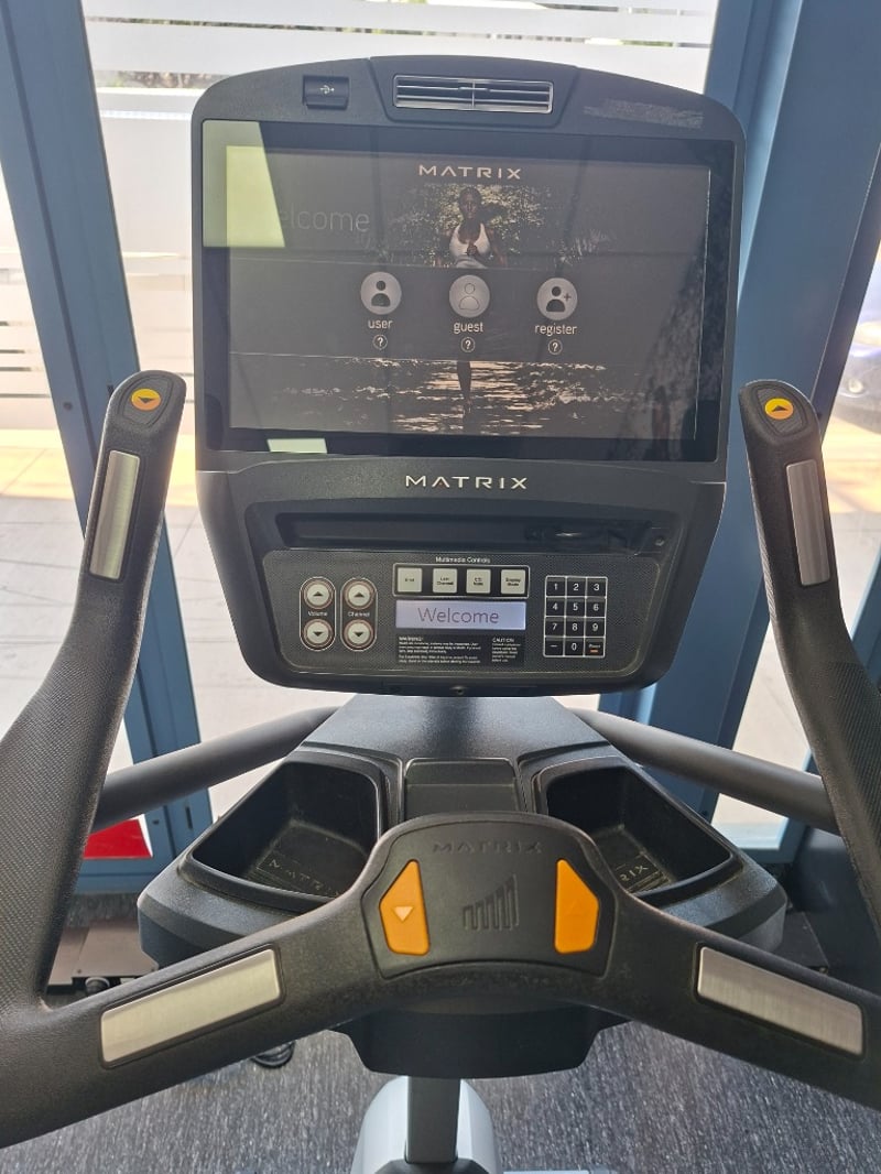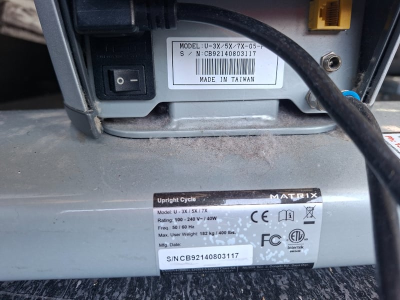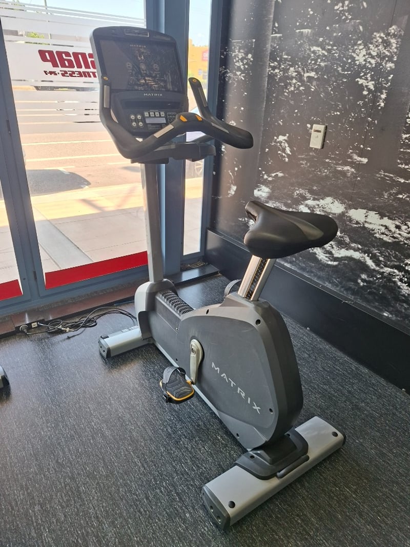Upright Bike – Matrix Model: U-3X / 5X / 7X Series Console: HURESAC-7XI-C Description: Matrix commercial upright exercise bike designed for smooth, low-impact cardio training. Features an ergonomic seat, adjustable resistance levels, and a high-quality console for workout tracking and program selection.