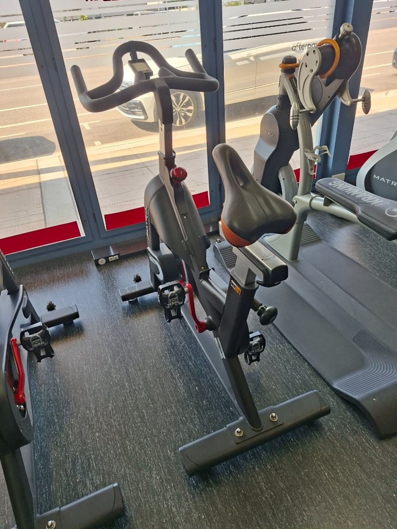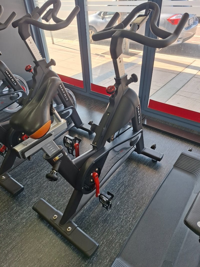 Matrix IC2 indoor cycle designed for smooth, realistic road-style training. Features a friction-based resistance system, fully adjustable seat and handlebars, and a heavy flywheel for consistent momentum.