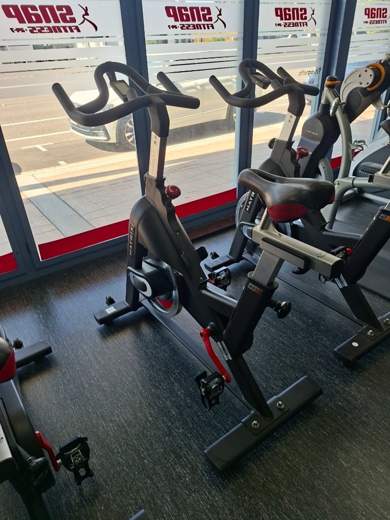 Matrix IC2 indoor cycle designed for smooth, realistic road-style training. Features a friction-based resistance system, fully adjustable seat and handlebars, and a heavy flywheel for consistent momentum.