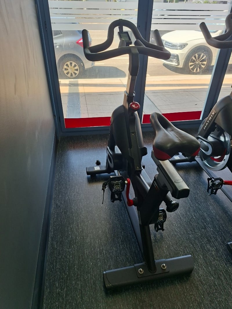 Matrix IC2 indoor cycle designed for smooth, realistic road-style training. Features a friction-based resistance system, fully adjustable seat and handlebars, and a heavy flywheel for consistent momentum.
