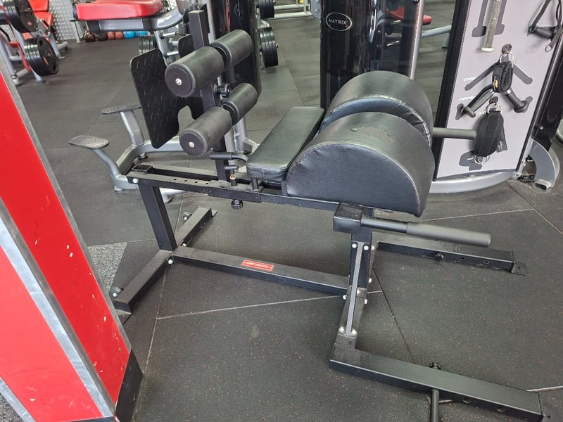 Matrix commercial-grade Glute-Ham Developer designed for posterior chain training, targeting glutes, hamstrings, and core stability. Features adjustable footplate and rollers, thick padded support, and a heavy-duty steel frame for maximum durability.