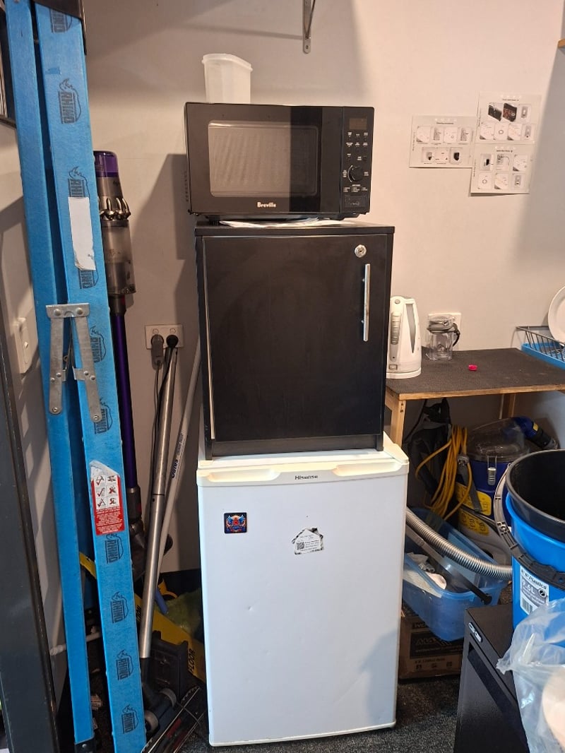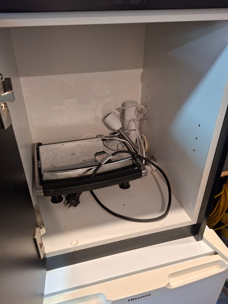 Assorted kitchen accessories, mini fridge, hisense, breville microwave, sandwich press SOLD AS LOT