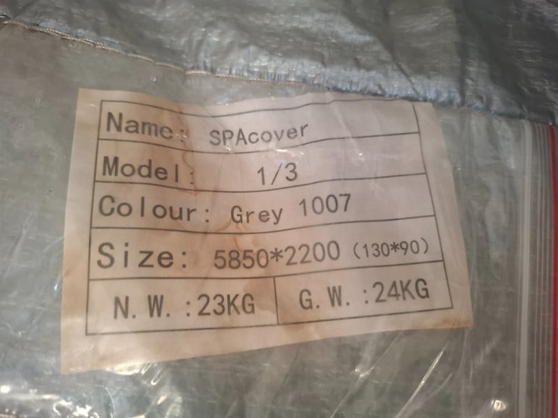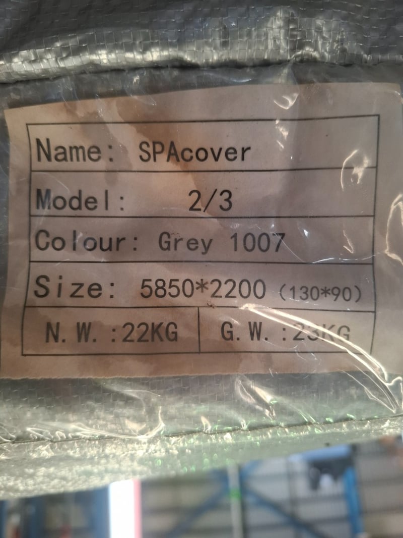 Spa Cover - 5850mm x 2200mm Gross weight Total: 69kg (23kg per piece)