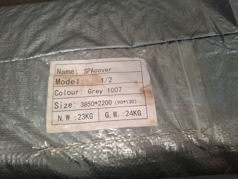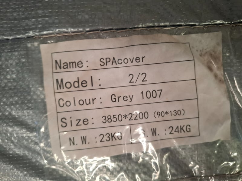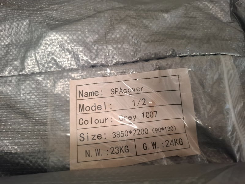 Spa Cover Grey 1007 - 3850mm x 2200mm Gross weight Total: 72kg (24kg per piece) Note: Full Set and Extra Piece