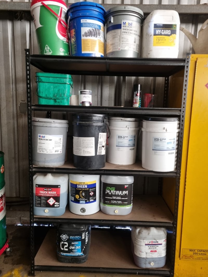 Truck Oil/Grease lot Various oils & Grease ( refer to photos for brands and qty ) Notes: Not all drums/buckets are full/sealed Shelving Included - 1200x540x1800 Sold as Lot Location: Warragamba, NSW Contact: Jonathan Naime - 0400 733 207 Collections: Monday 1st to Wednesday 3rd December - 9am to 4pm