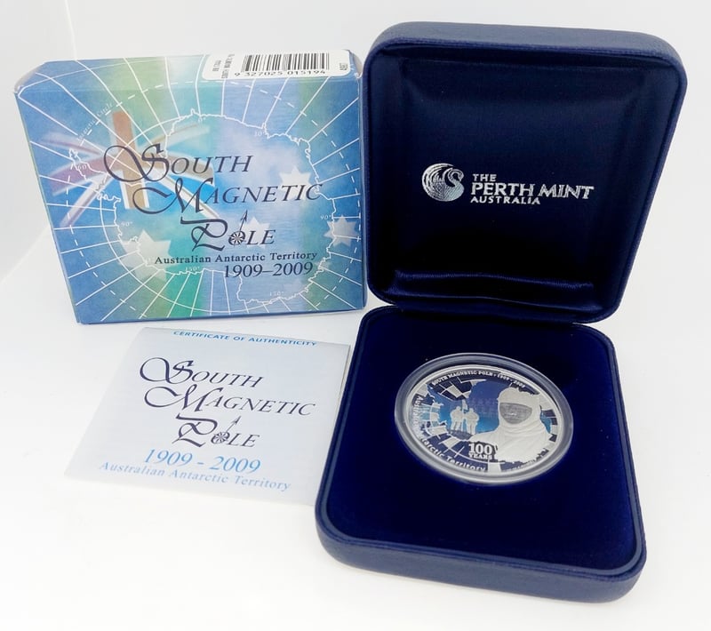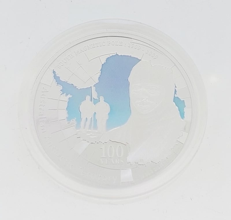1909 - 2009 AUSTRALIAN ANTARCTIX TERRITORY SOUTH MAGNETIC POLE 1OZ SILVER PROOF COIN488239+23
