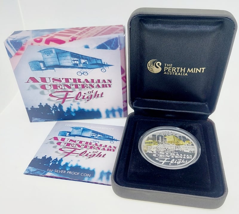 2010 AUSTRALIAN CENTENARY OF FLIGHT 1OZ SILVER PROOF COIN488239+24