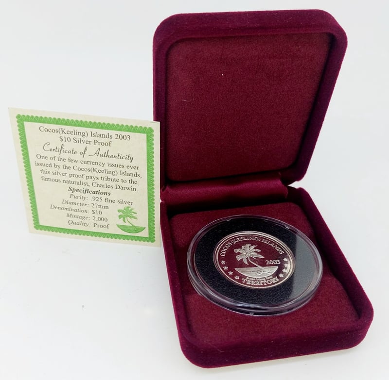 2003 COCOS(KEELING) ISLANDS, TRIBUTE TO CHARLES $10 SILVER PROOF488239+25