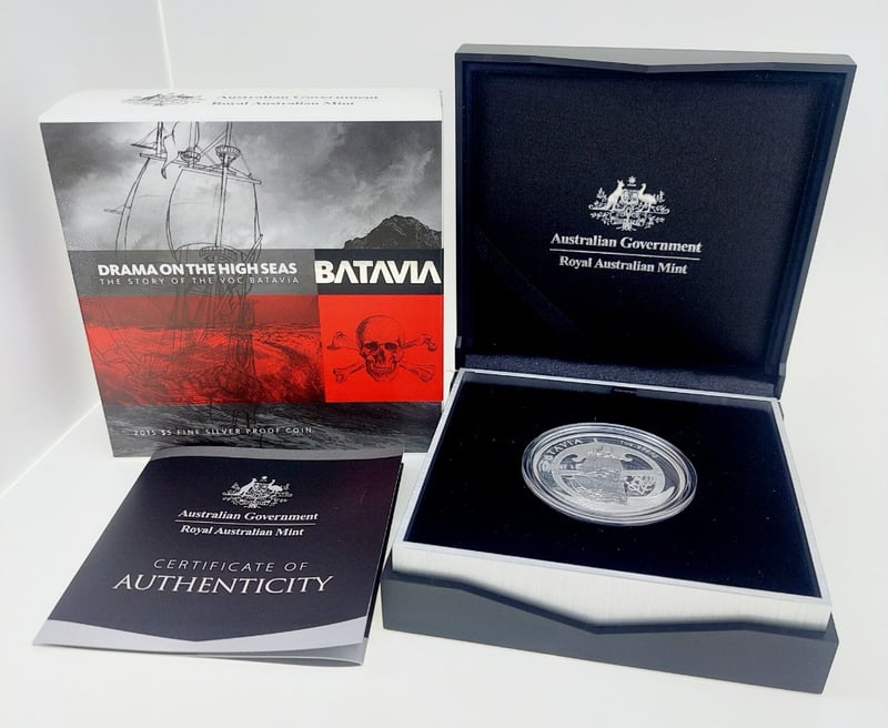 2015 BATAVIA DRAMA ON THE HIGH SEAS THE STORY OF THE VOC BATAVIA $5 FINE SILVER PROOF COIN488239+29
