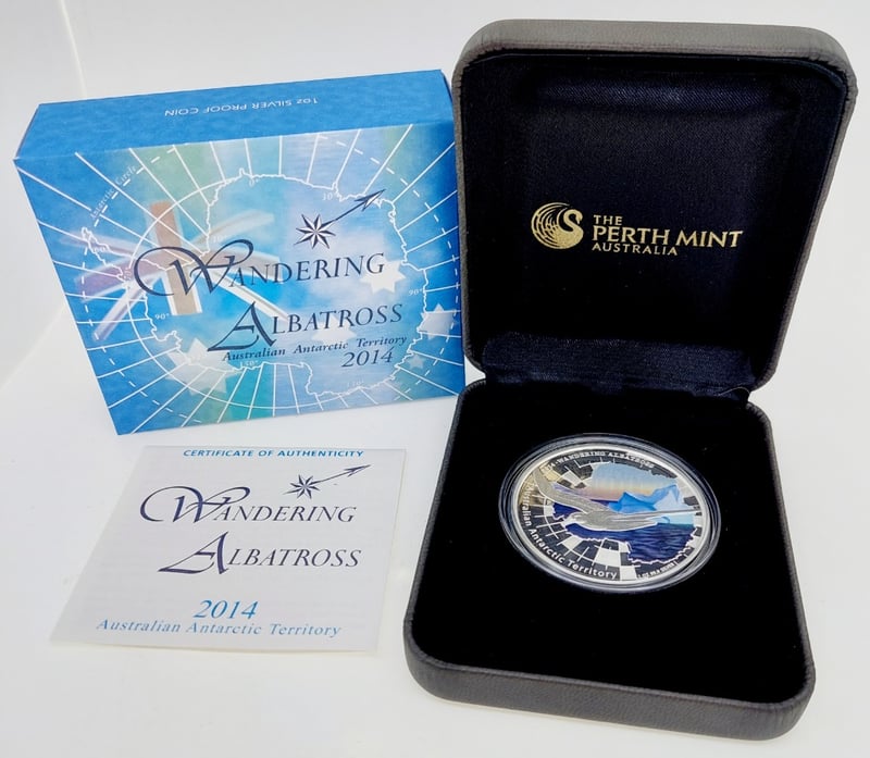 2014 AUSTRALIAN ANTARCTIC TERRITORY WANDERING ALBATROSS 1OZ SILVER PROOF COIN488239+37