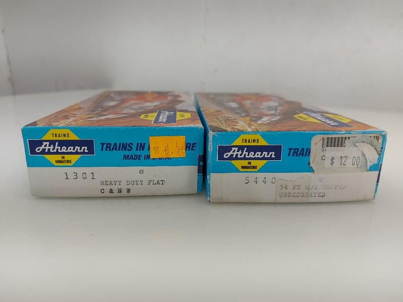 Model Train Lot, 5440 34 FT R/S Hopper Undecorated, And 1301 Heavy Duty Flat C&NW, Quantity 2In Original BoxesSold As Lot