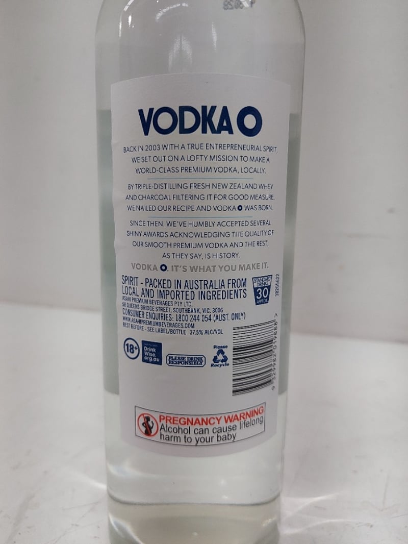 Vodka O, Premium Triple Distilled Vodka, 1 Litre