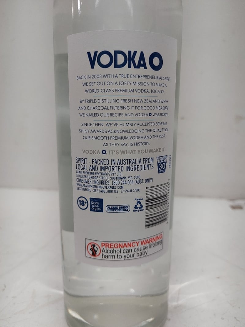 Vodka 0, Charcoal Filtered, Triple Distilled Vodka, 1 Litre,