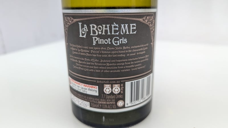 La Boheme Yarra Valley Pinot Gris, 2023, 750 ml, 7.7 Standard Drinks, Quantity 6 Sold As Lot