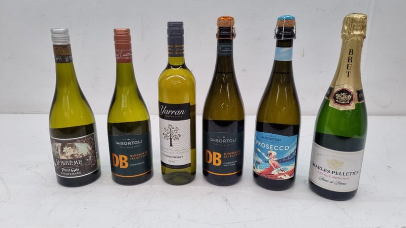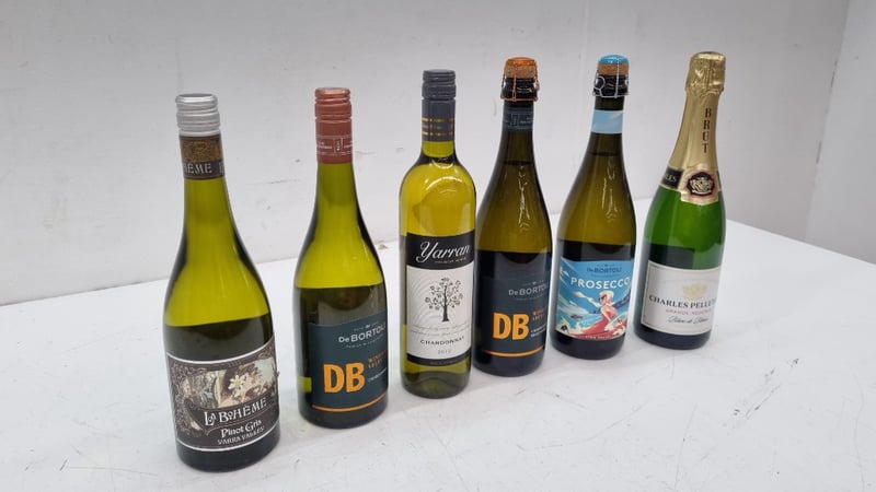 Assorted Wine Lot, Includes Yarra Valley Pinot Gris, DeBertoli Chardonnay, Yarran Chardonnay, DeBertoli Chardonnay/Pinot Noir, DeBertoli Prosecco, Charles Pelletier Brut