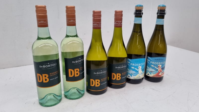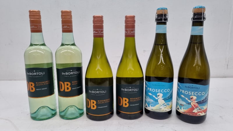 Assorted 6 Bottle DeBertoli Wine Lot, Includes Pinot Grigio, Chardonnay, Prosecco Sold As Lot