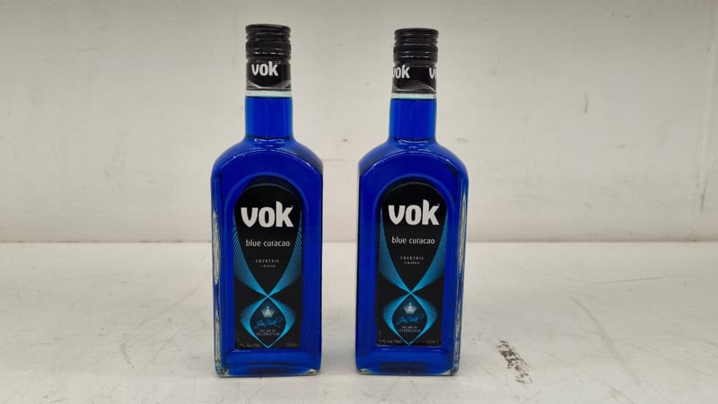 Vok Blue Curacao, Cocktail Liquer, 17% Alc Vol, 500mL Quantity 2x