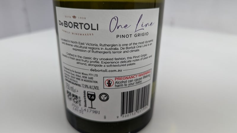 De Bortoli One Line Pinot Grigio Rutherglen 2024, 750 ml, 7.6 Standard Drinks, Quantity 6Sold As Lot