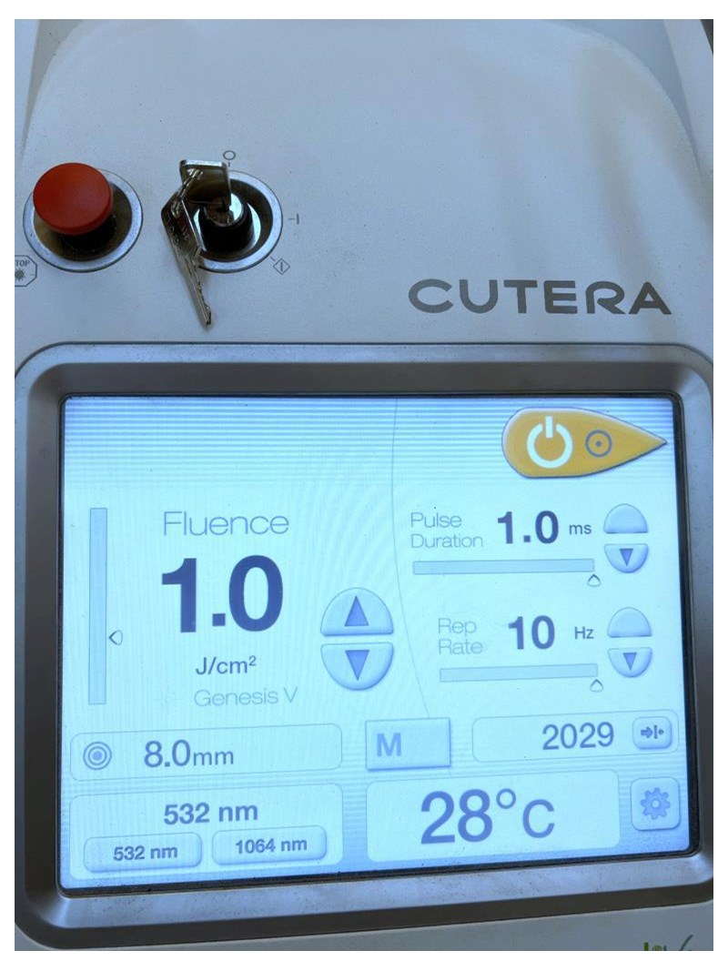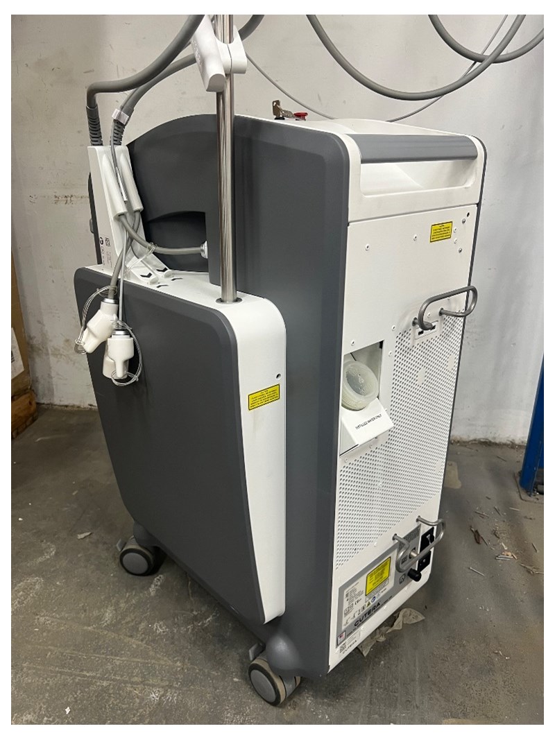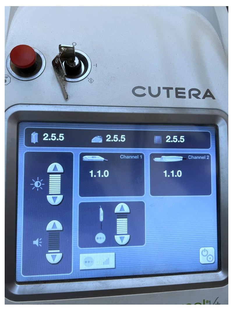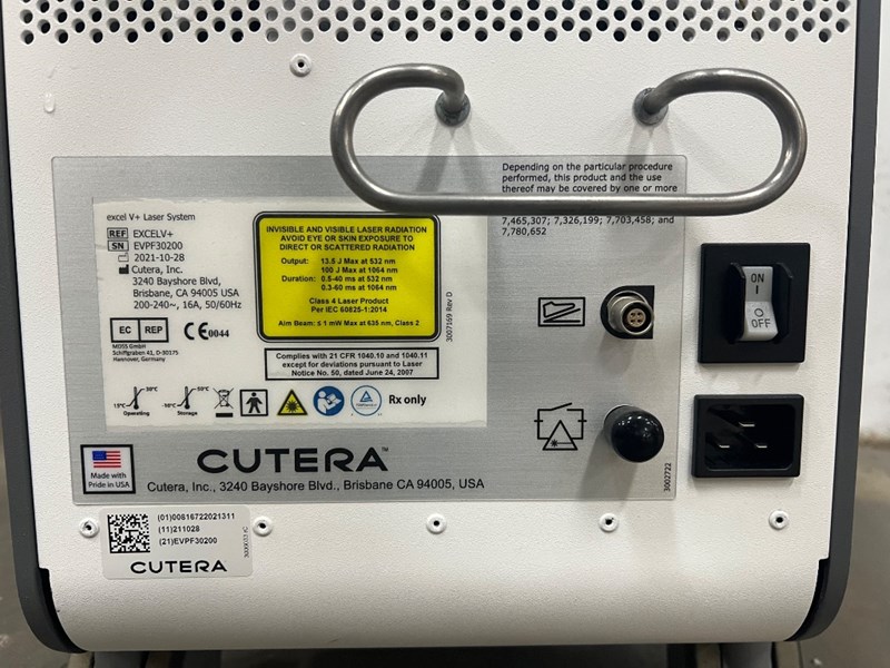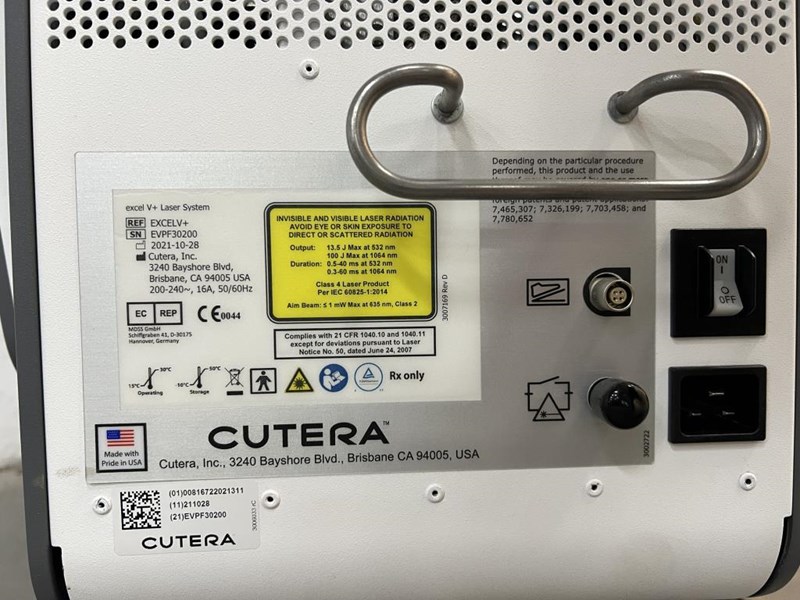 2021 Cutera Excel V Plus Laser hair removal machine Year: 2021 Make: Cutera Model: Excel V Plus Description: Genesis V handpiece, fully-integrated CoolView, Pencil-like Dermastat handpieces, Spot sizes up to 16mm, micro-pulsed 532 nm wavelength. Manufacturer Notes: "Applications include rosacea, diffuse redness, facial veins, leg veins, periorbital veins, angiomas, port wine stains, poikiloderma, wrinkles, venous malformations, bruising, inflammatory acne, benign pigmented lesions, age spots, small-area hair removal, scars, and acne scars."