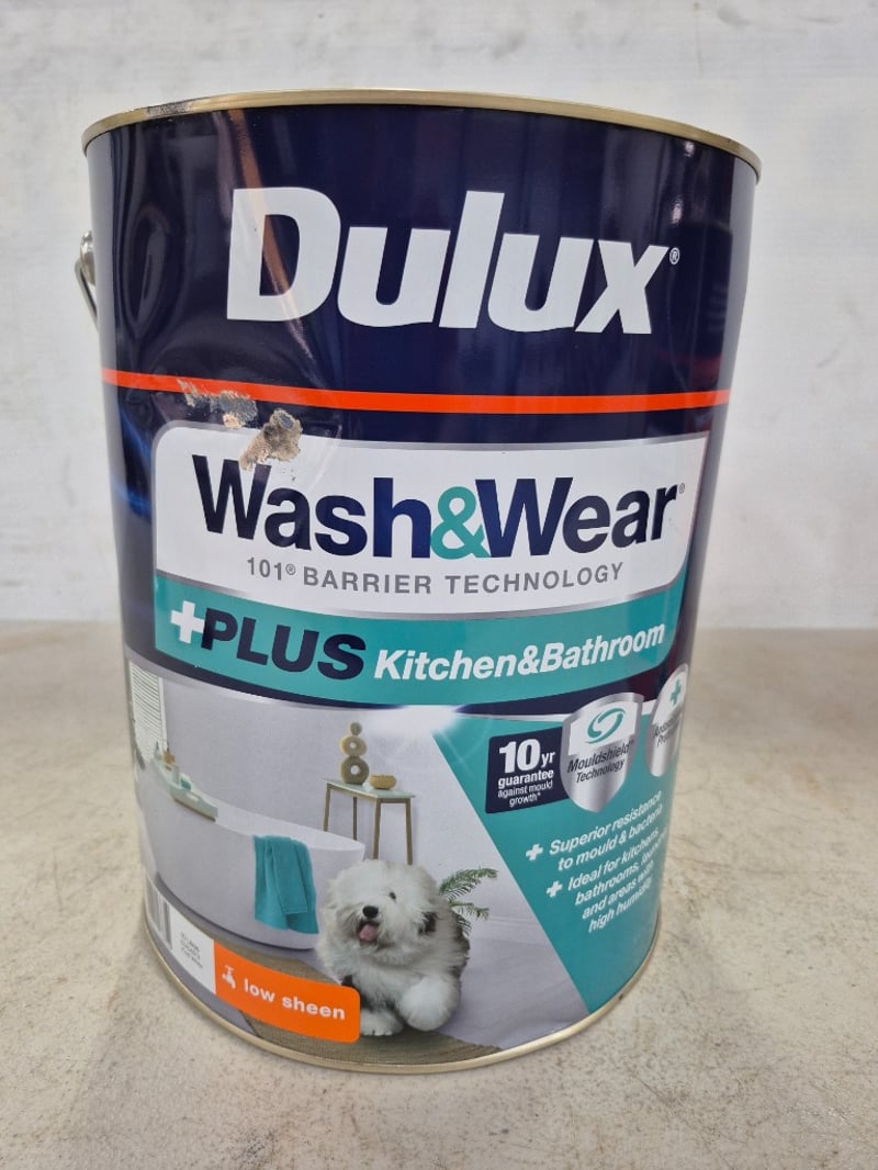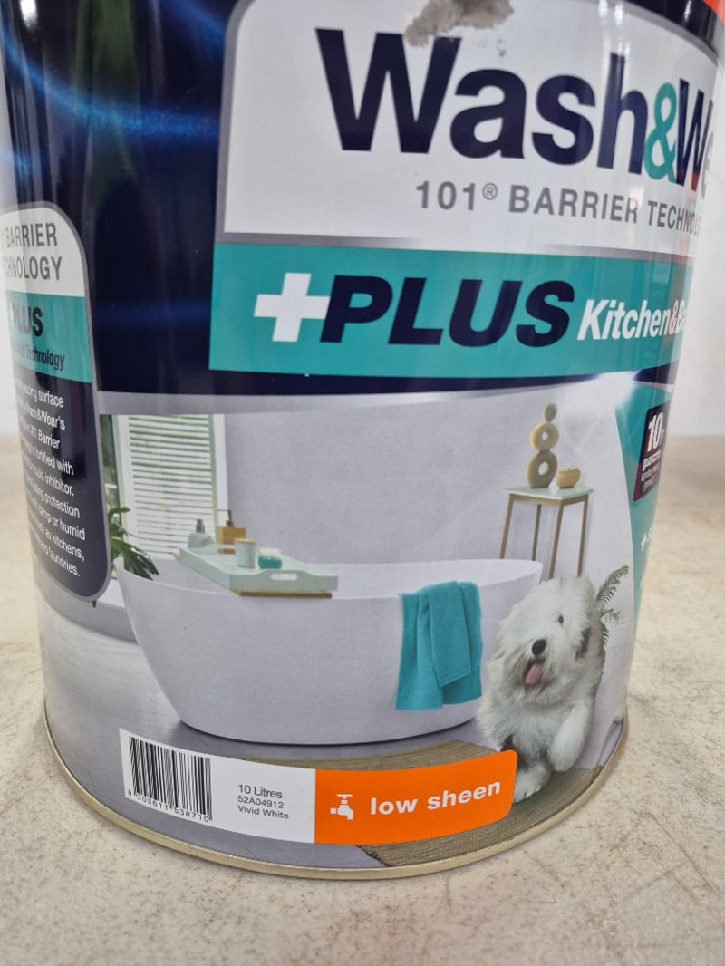Paint, Dulux Wash & Wear + Kitchen & Bathroom, Low Sheen, Vivid White 10 L