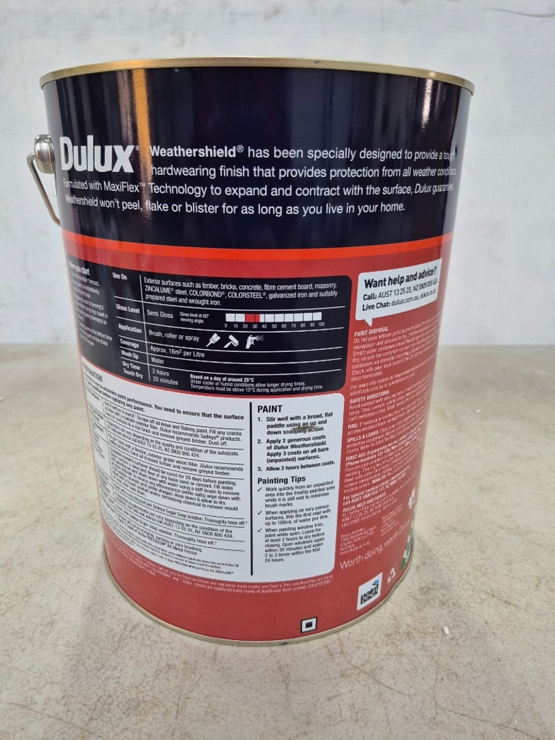 Paint, Dulux Weathershield, Semi Gloss, Vivid White 10LBID PER LITRE MUST TAKE 10 LITRES